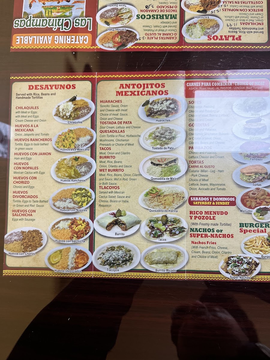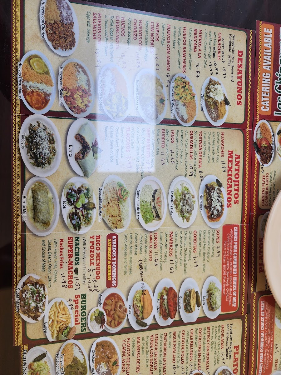 Chorizo and Potatoes, Chicharron Pressing, Chicharron Guisado or Choice of Meat Onion, Cilantro, Beans and Cheese.